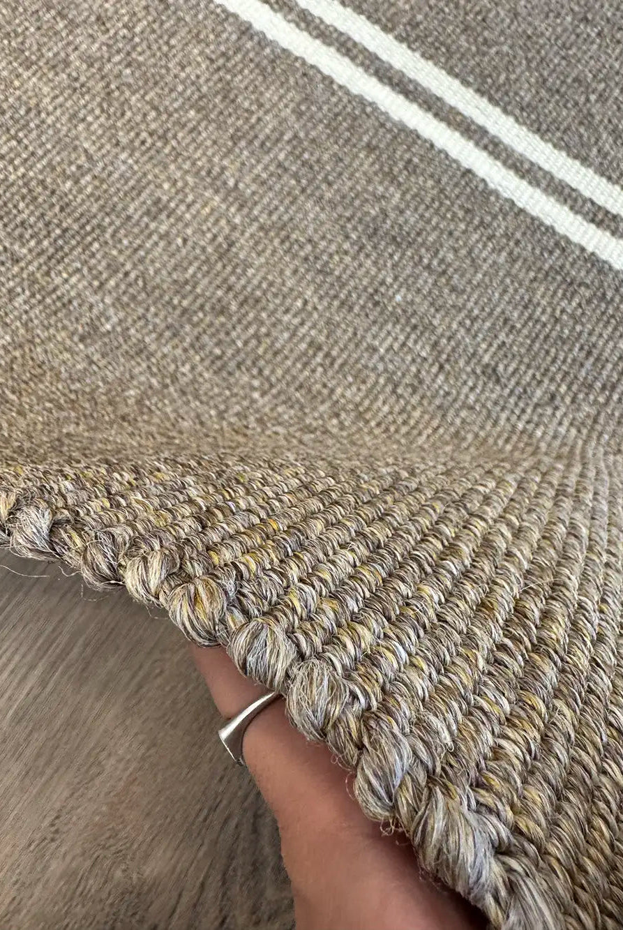 Alfombra Bazhars artesanal, tejida a mano por artesanos con finas hebras de jute, logrando un trama densa, muy práctica y resistente. Excelente terminaciones con backing anti deslizante por debajo y un borde de tela en todo el perímetro.