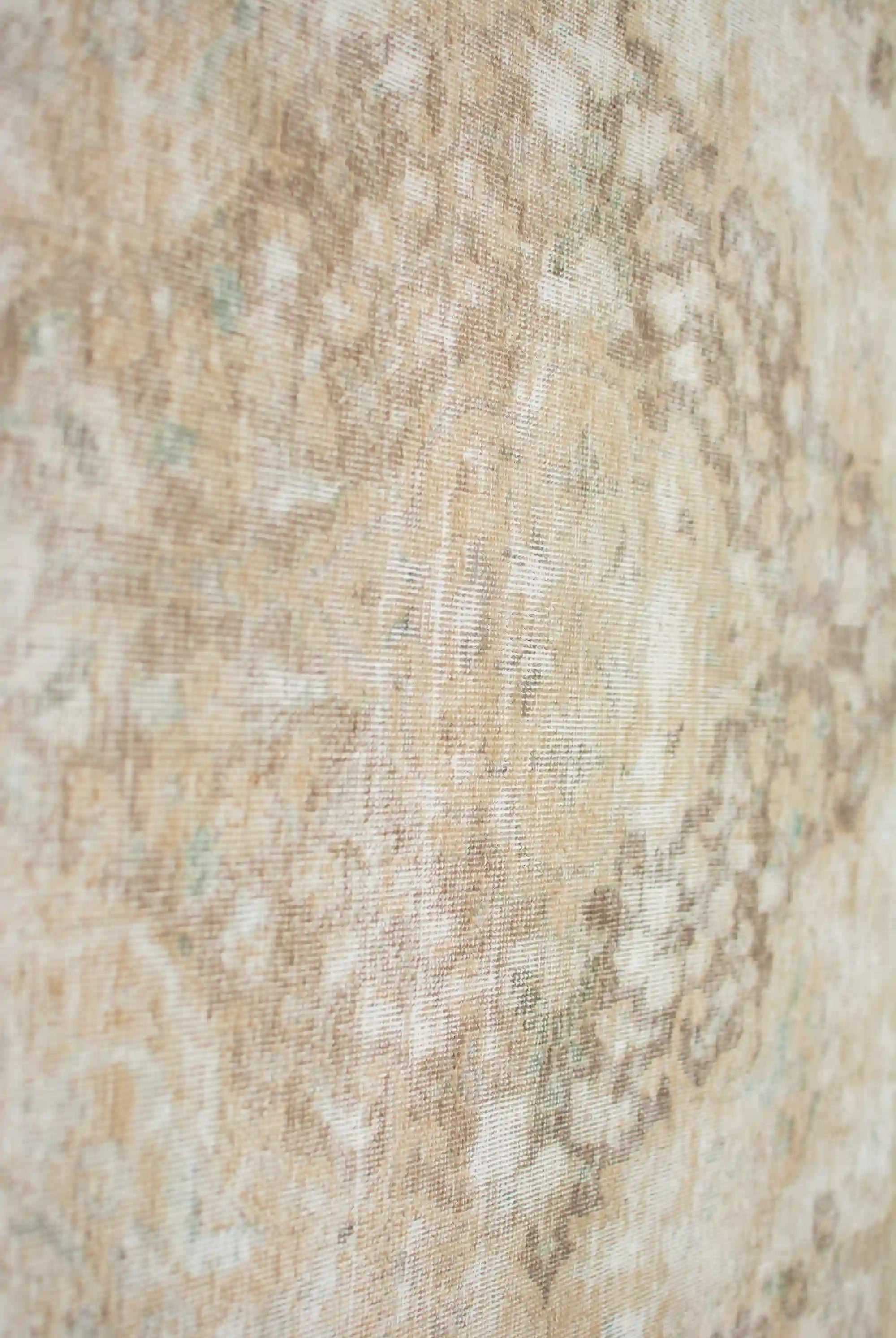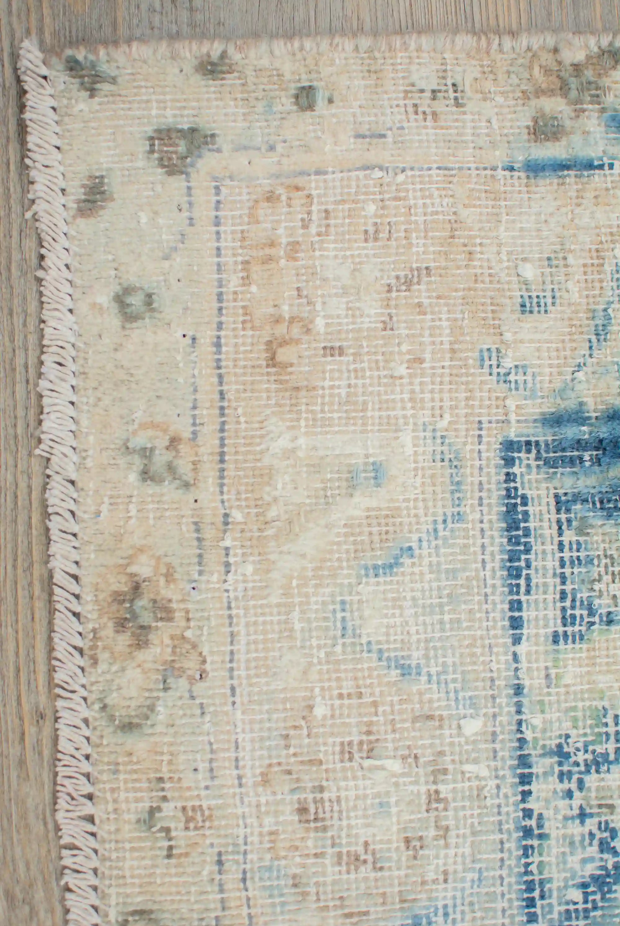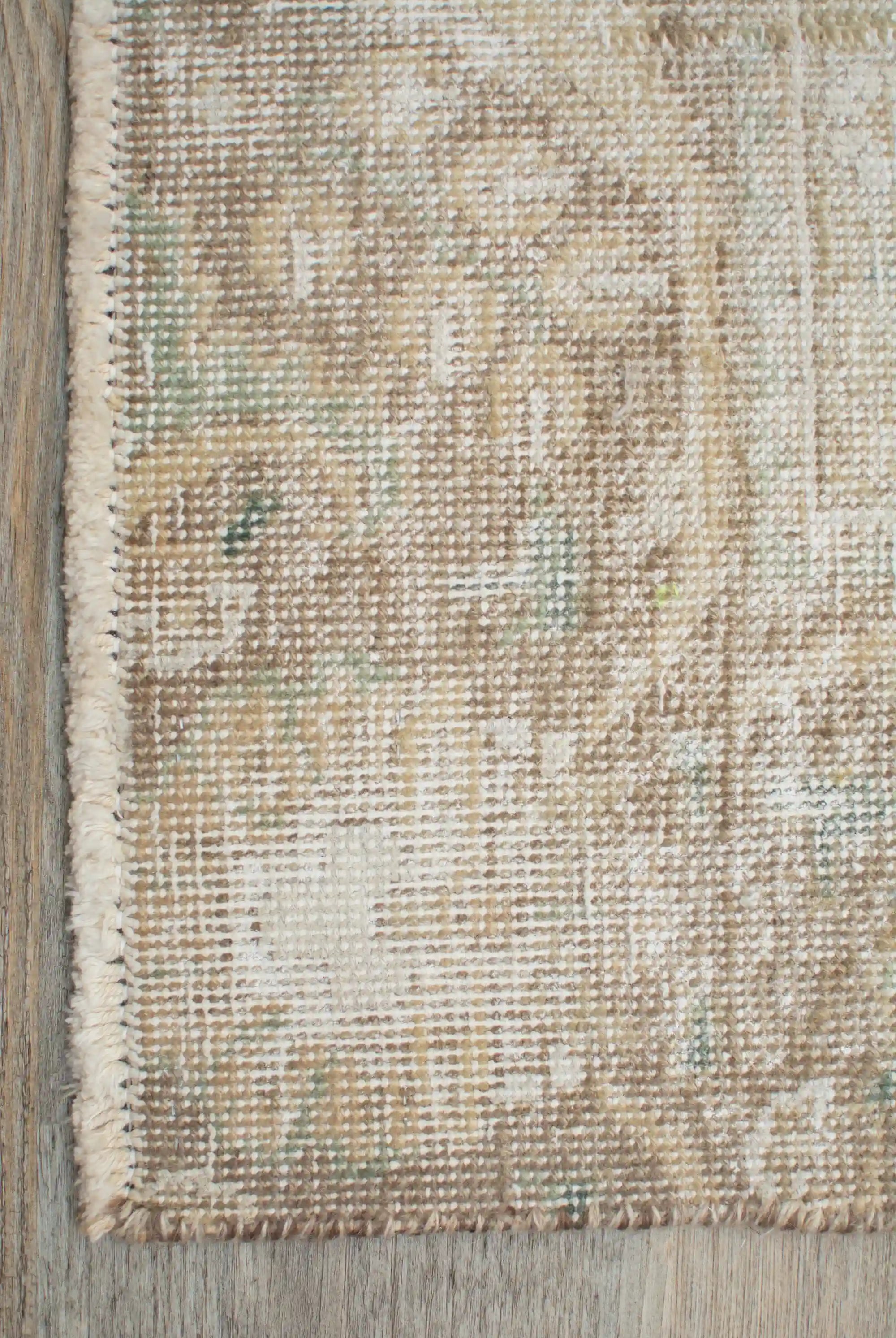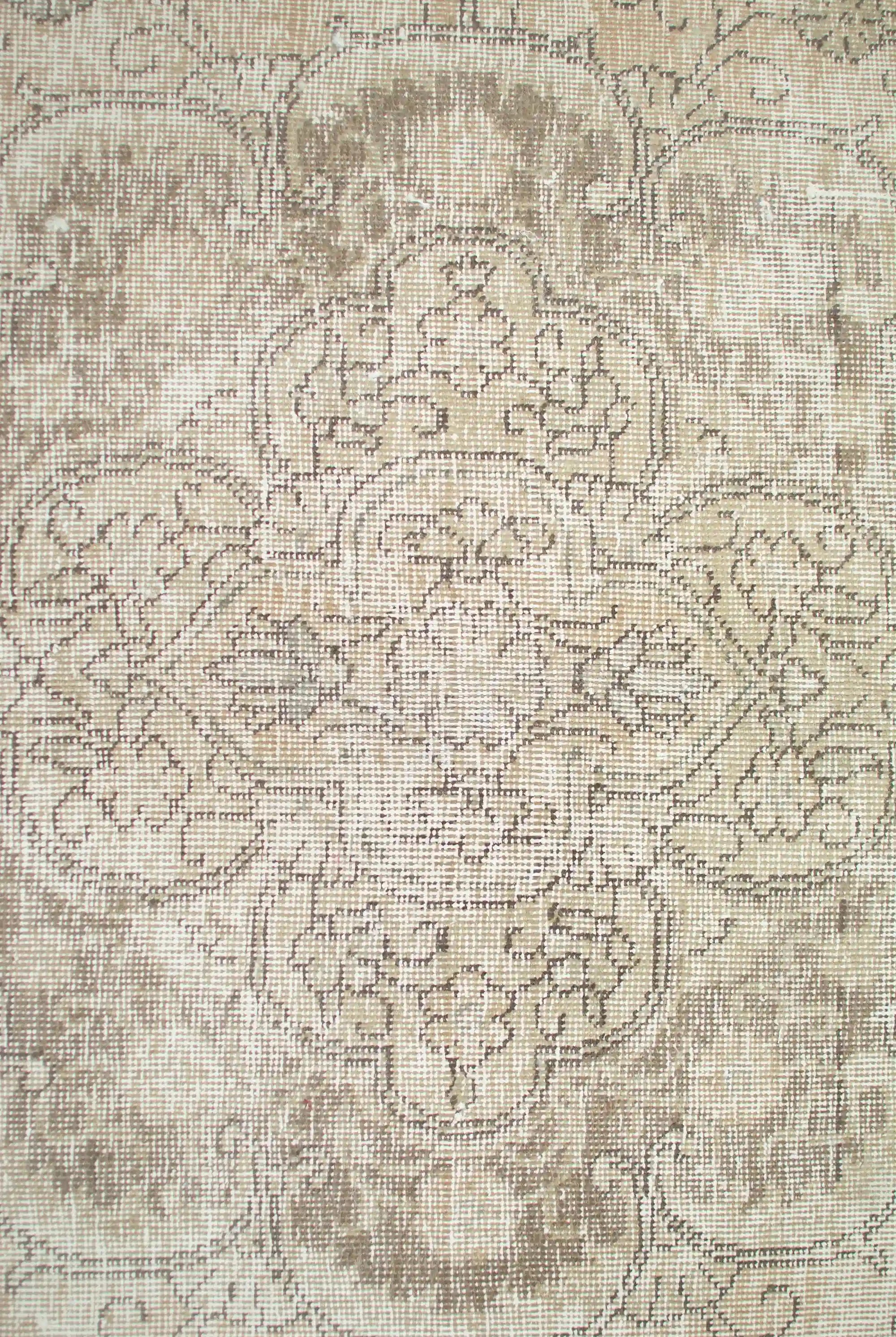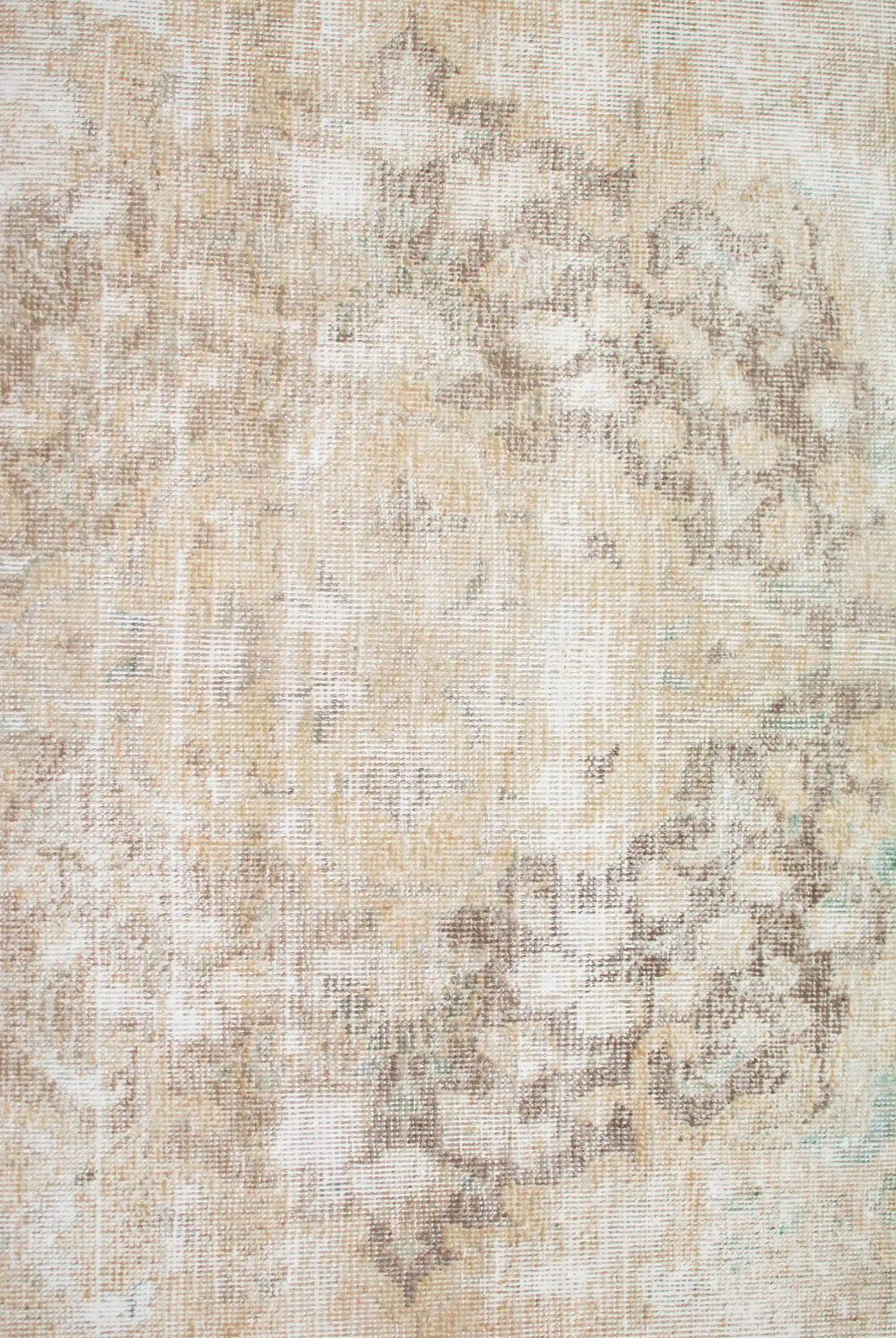 Alfombra anudada a mano por artesanos, reciclada y modernizada a través de tratamientos de teñido y carving, logrando un diseño clásico con colores y texturas modernas.