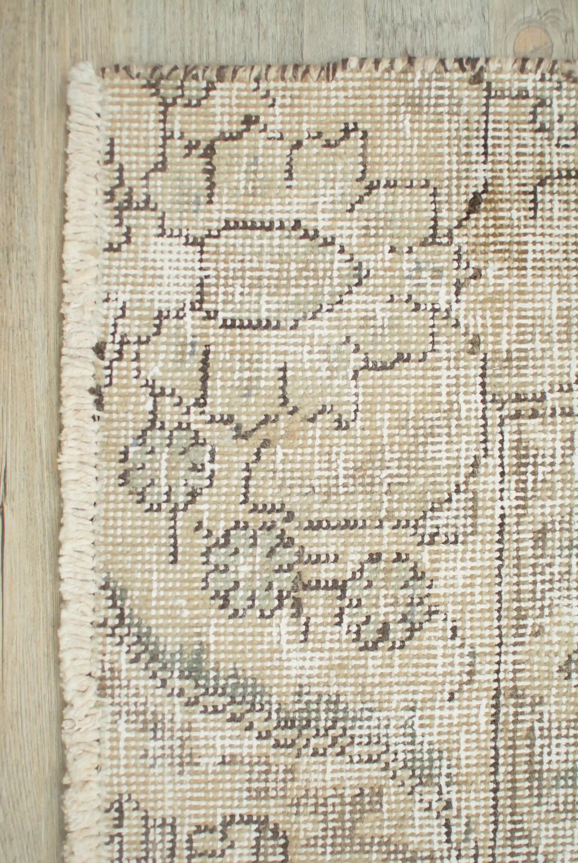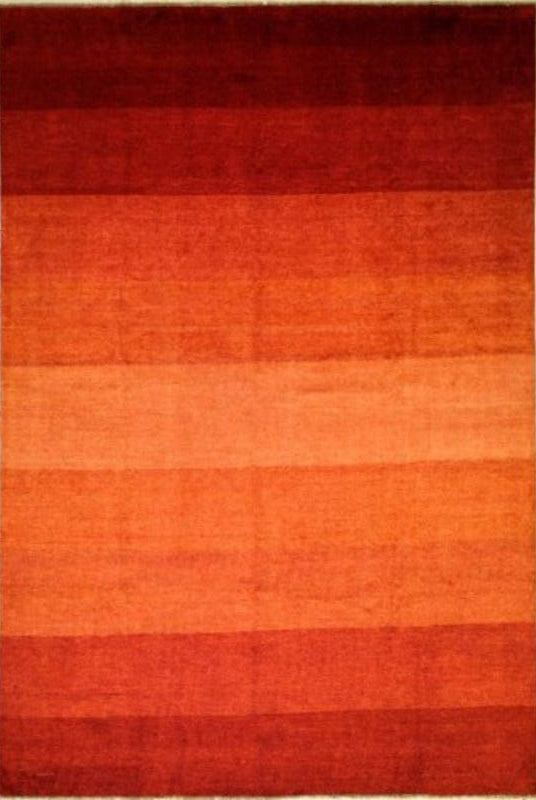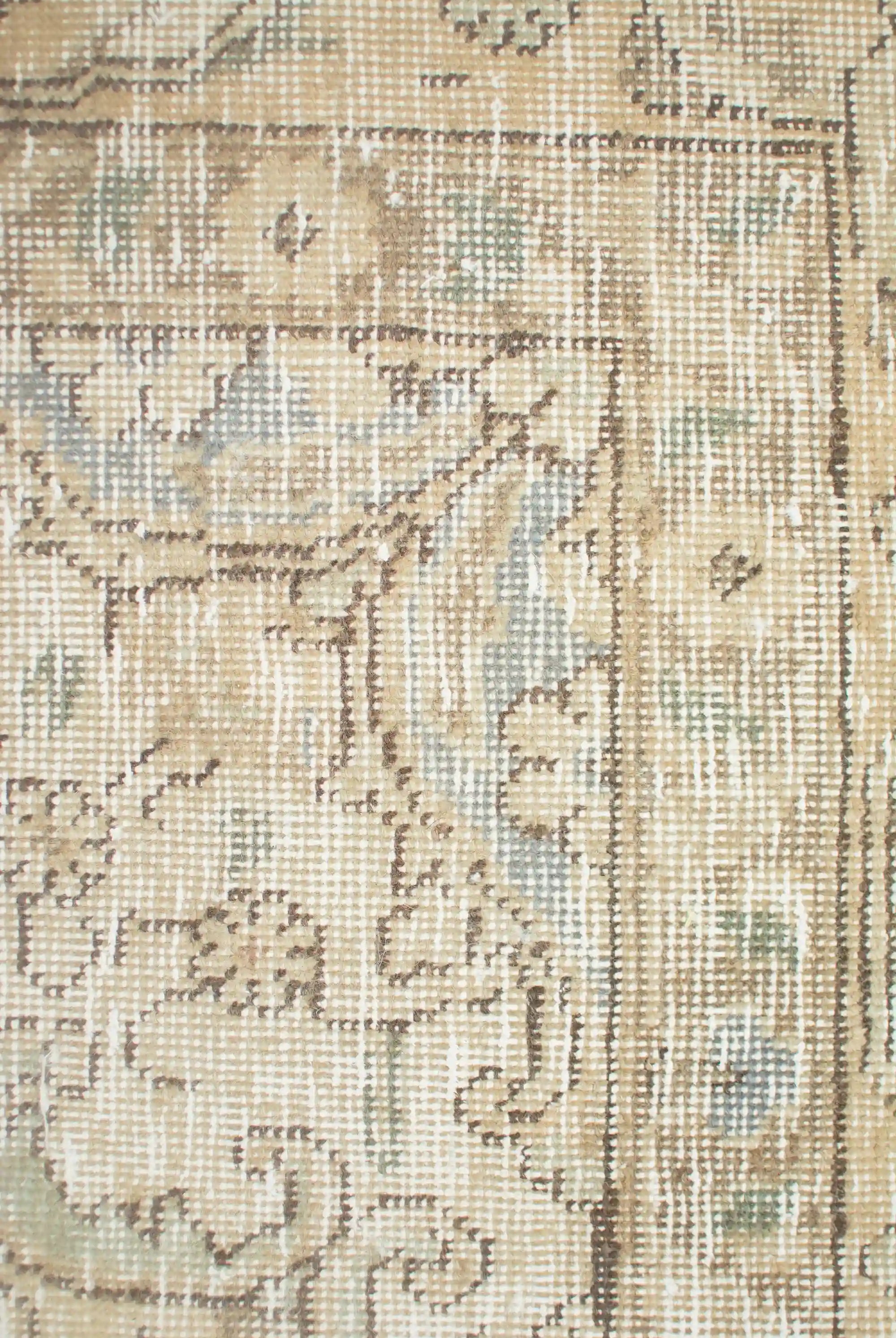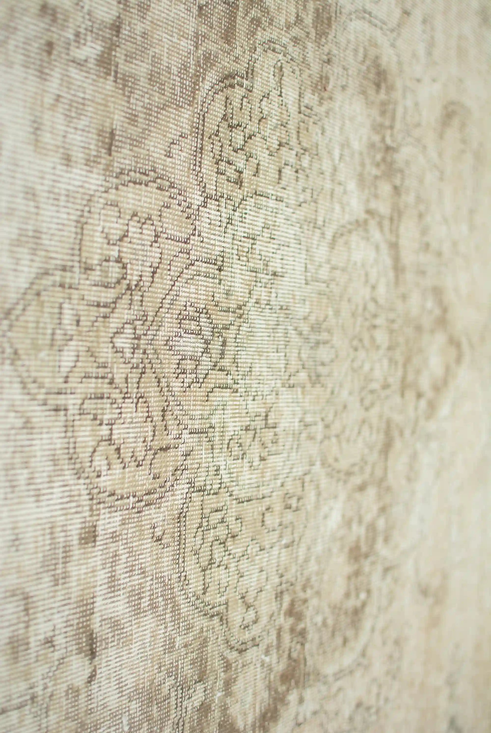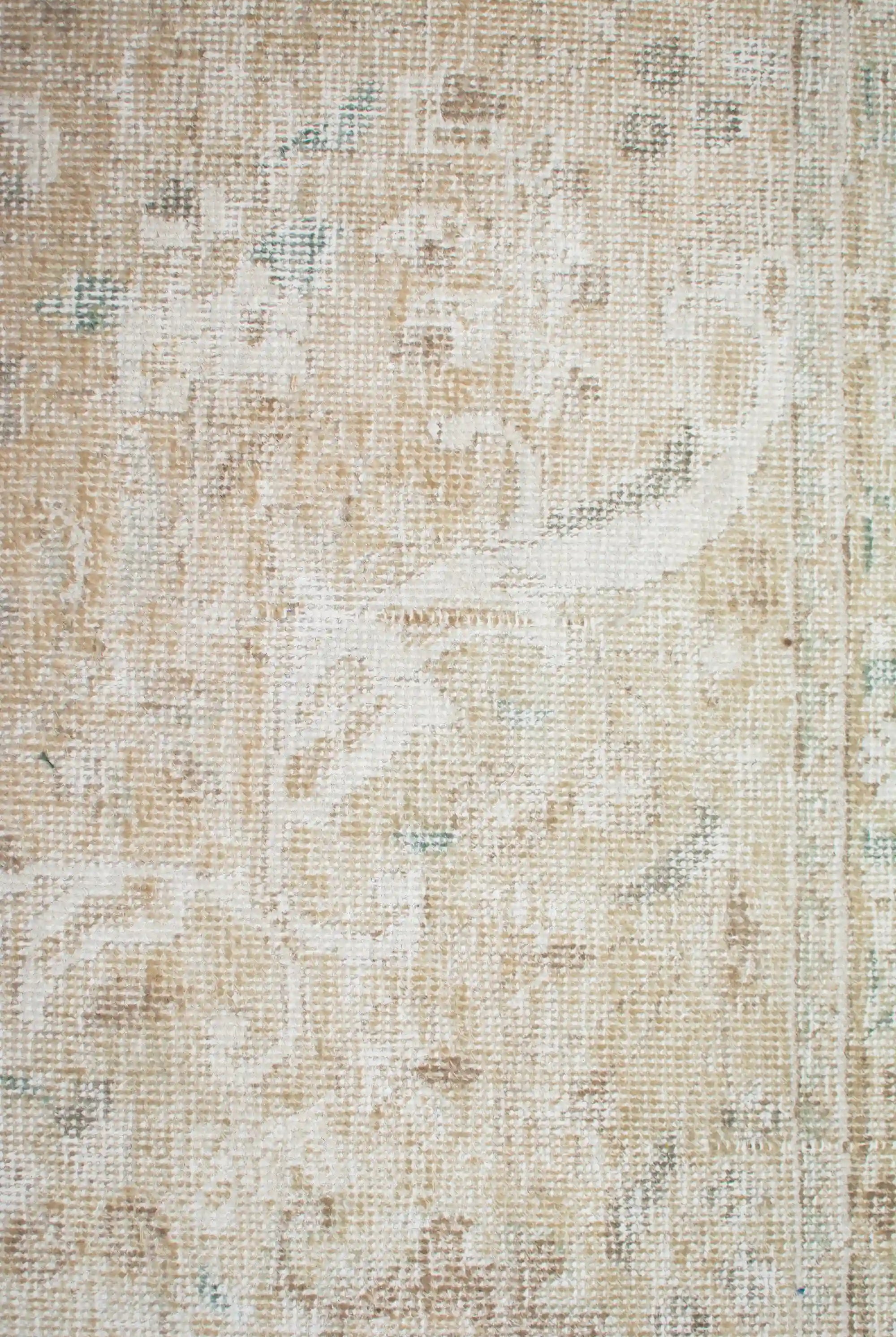Alfombra anudada a mano por artesanos, reciclada y modernizada a través de tratamientos de teñido y carving, logrando un diseño clásico con colores y texturas modernas.
