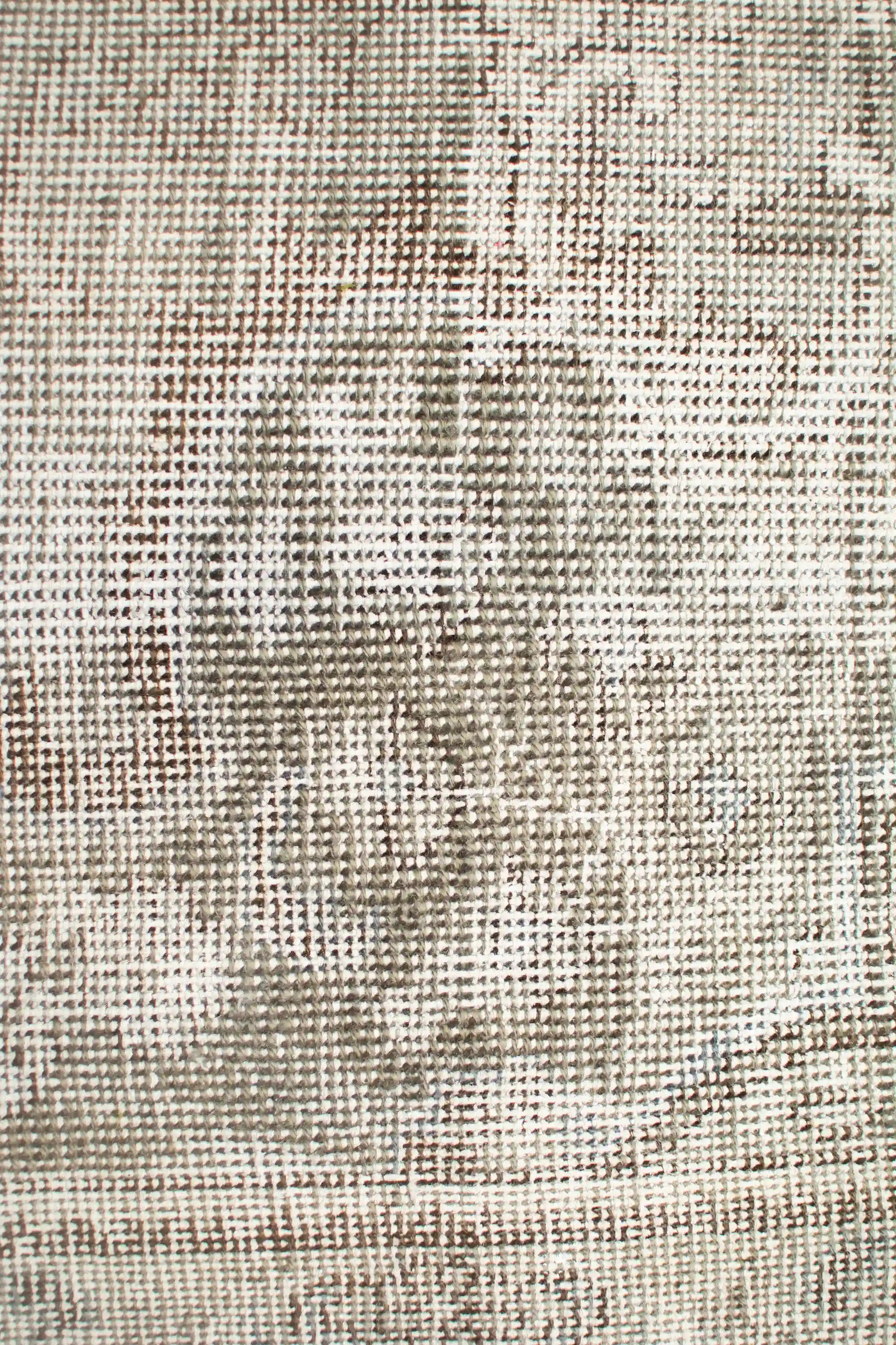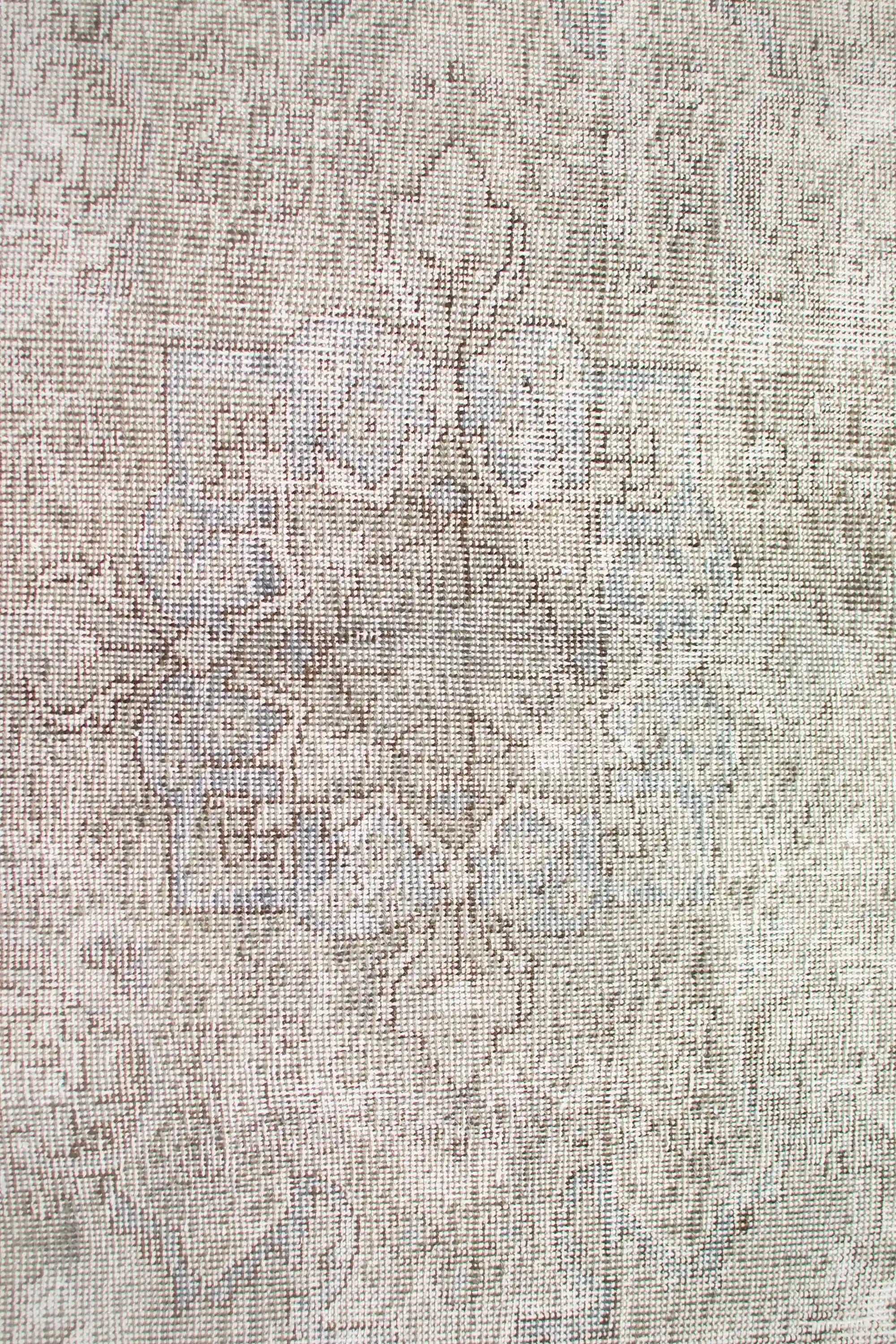 Alfombra anudada a mano por artesanos, reciclada y modernizada a través de tratamientos de teñido y carving, logrando un diseño clásico con colores y texturas modernas.
