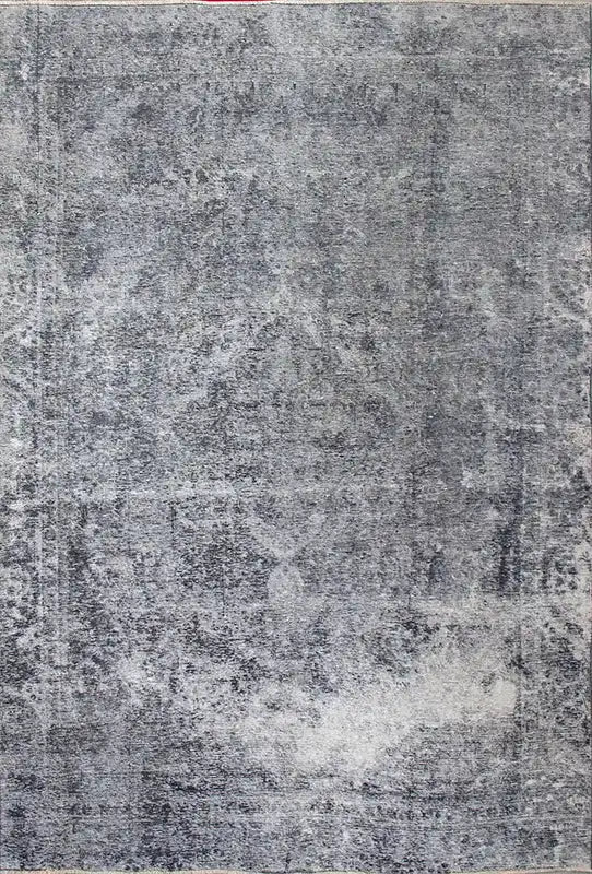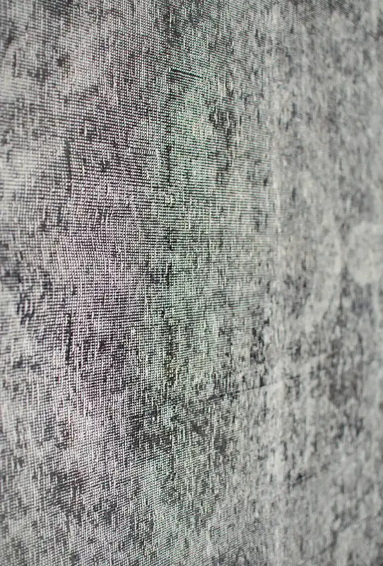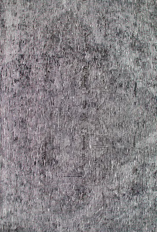 Alfombra anudada a mano por artesanos, reciclada y modernizada a través de tratamientos de teñido y carving, logrando un diseño clásico con colores y texturas modernas.