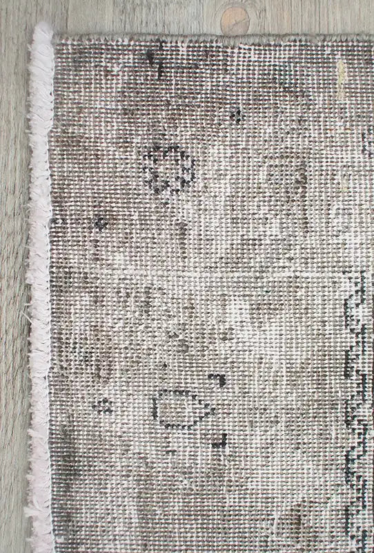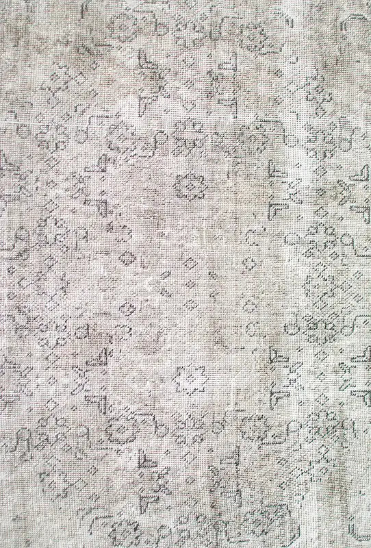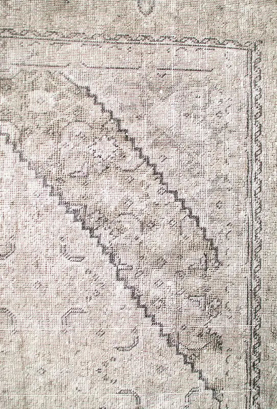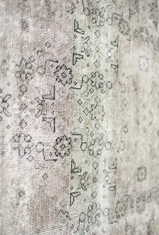 Alfombra anudada a mano por artesanos, reciclada y modernizada a través de tratamientos de teñido y carving, logrando un diseño clásico con colores y texturas modernas.