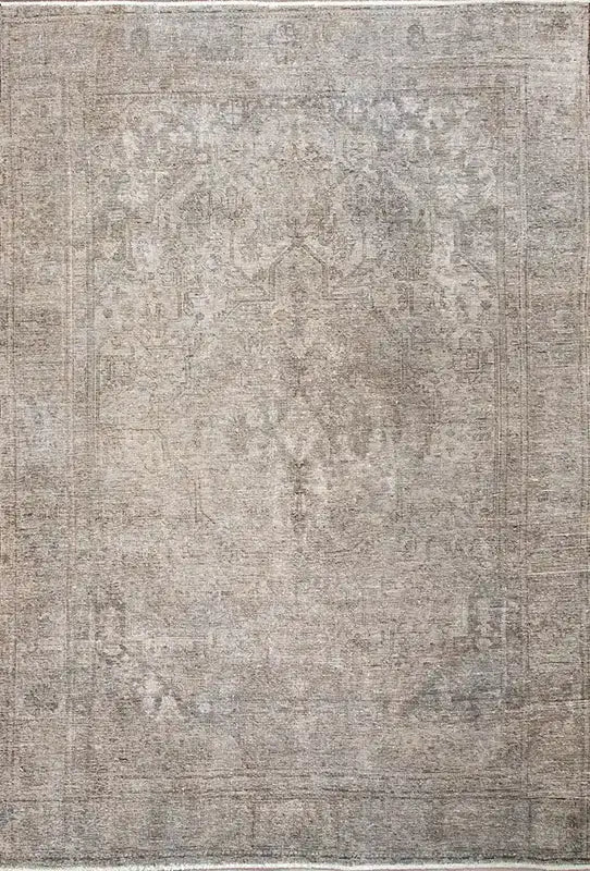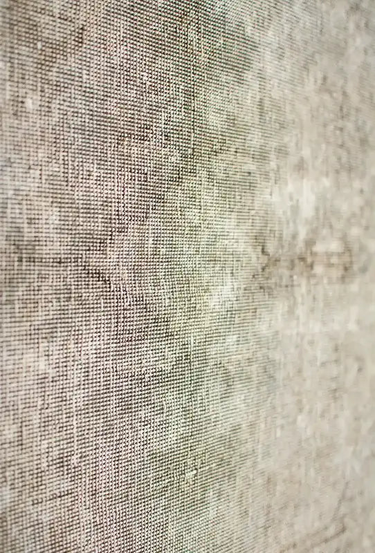 Alfombra anudada a mano por artesanos, reciclada y modernizada a través de tratamientos de teñido y carving, logrando un diseño clásico con colores y texturas modernas.