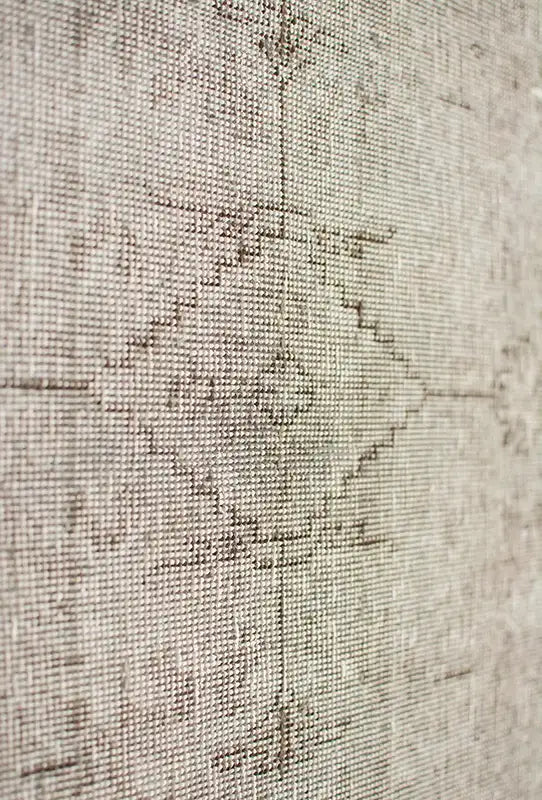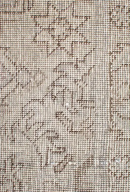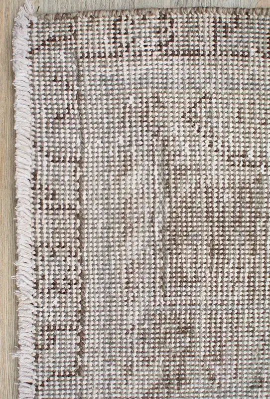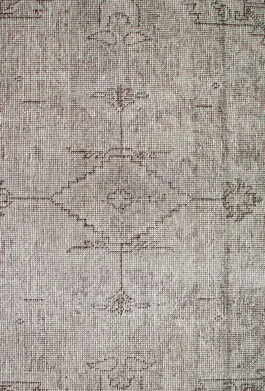 Alfombra anudada a mano por artesanos, reciclada y modernizada a través de tratamientos de teñido y carving, logrando un diseño clásico con colores y texturas modernas.