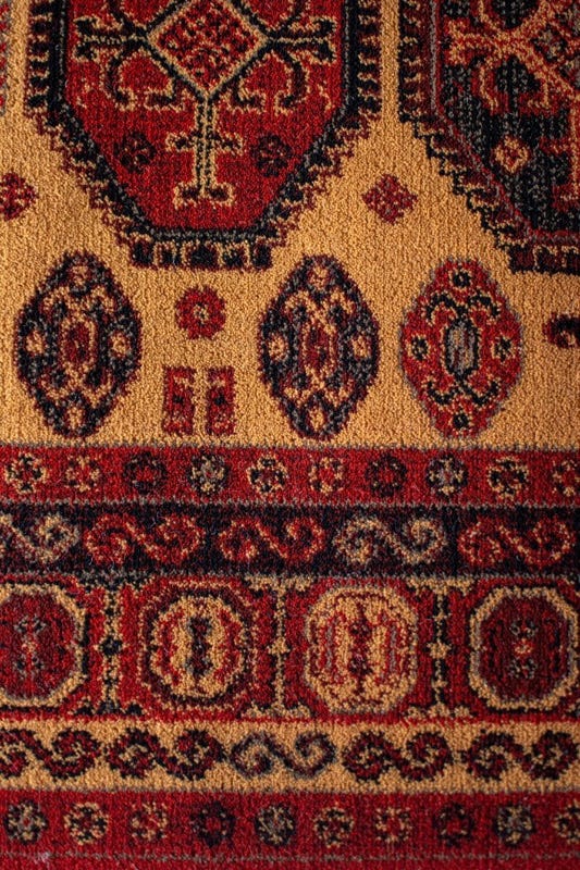 Descubre la elegancia y durabilidad de nuestra alfombra de origen egipcio. Confeccionada meticulosamente a máquina utilizando fina lana de oveja, esta pieza destaca por sus diseños que emulan motivos clásicos, ofreciendo un tramado denso de alta definición. Cada alfombra cuenta con excelentes terminaciones y un detallado orillado que realza su perímetro, asegurando un producto de calidad superior y duradero. Perfecta para añadir un toque de sofisticación a cualquier espacio