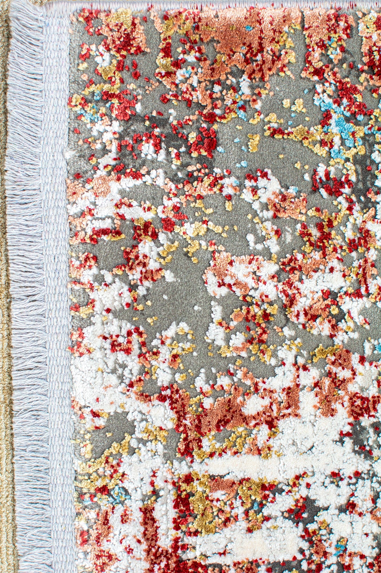 Fina alfombra Bazhars, hecha en base a viscosa (fibra de bambú) y acrílico. Posee 2 millones de puntadas por m2, logrando un exquisito tramado denso, suave y resistente. Sus modernos diseños son abstractos, con una elegante combinación de tonos pastel. Tiene excelentes terminaciones y orillado por su perímetro.