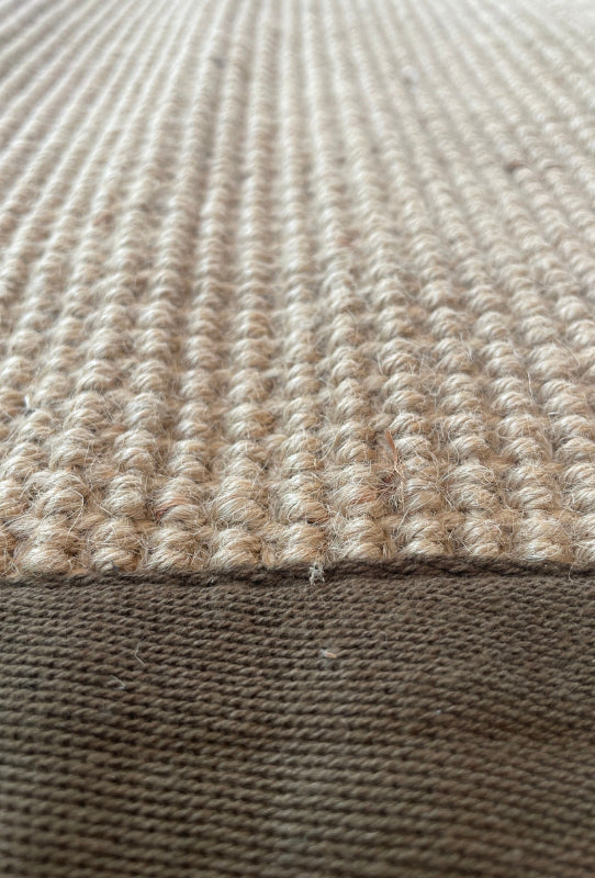 Alfombra Bazhars artesanal, tejida a mano por artesanos con finas hebras de jute, logrando un trama densa, muy práctica y resistente. Excelente terminaciones con backing anti deslizante por debajo y un borde de tela en todo el perímetro