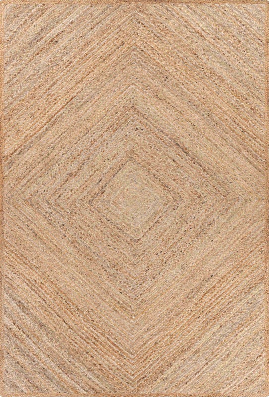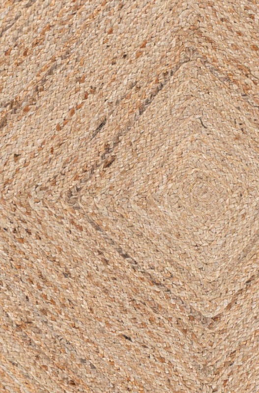 Alfombra Bazhars artesanal, tejida a mano por artesanos con finas hebras de jute y un fino tramado en torno a un gran rombo concéntrico. Excelentes terminaciones con backing anti deslizante por debajo.