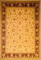 Alfombra anudada a mano por artesanos, con diseños florales, estilo clásico y predominancia de tonos beige claro, café y burdeos. El término "Ziegler" proviene de una distribuidora de alfombras anglo suiza que funcionaba en el siglo XIX