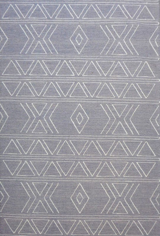 Alfombra Dhurrie Bazhars artesanal, confeccionada a mano por artesanos con lana natural de oveja. Con variedad de diseños geométrico étnicos en base a tonalidades grises y beige.