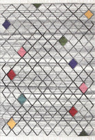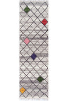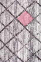 Alfombra Kelim Bazhars artesanal, confeccionada a mano por artesanos con lana natural de oveja. Se desarrolla un diseño sobre una base gris con rombos incorporando finos detalles de figuras en colores pastel, logrando una alfombra que realza los ambientes.