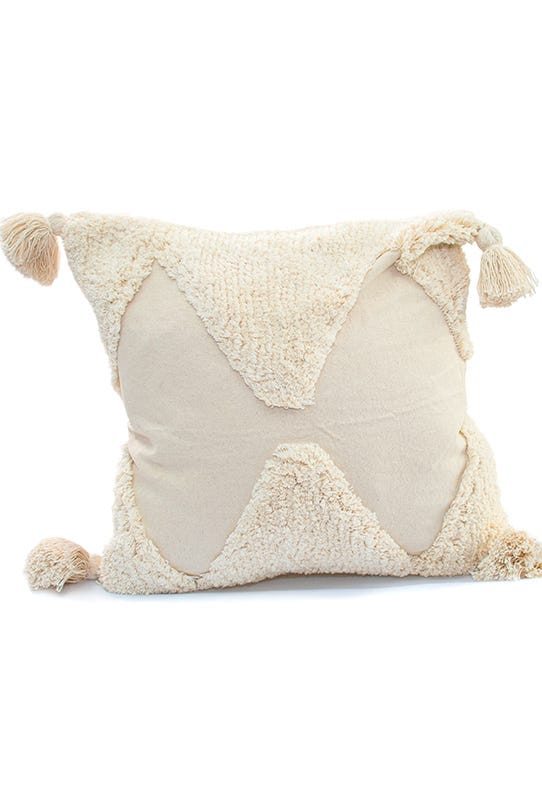 Funda de cojín Bazhars. Hecha en India compuesta por 88% algodón, 12% poliéster, tiene un diseño neutro y elegante, ideal para cualquier ambiente.