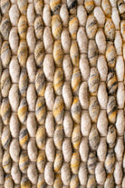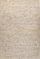 Alfombra Bazhars artesanal, confeccionada a mano por artesanos con lana natural de oveja. Su diseño combina tramados de tejido dentro de una tonalidad beige con sutiles toques de color azul, logrando una alfombra contundente con ricas texturas y gran calidez.