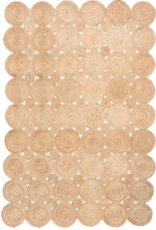 Alfombra Bazhars artesanal, tejida a mano por artesanos con finas hebras de jute y un fino tramado con un diseño en base a la unión de pequeños círculos. Excelentes terminaciones.