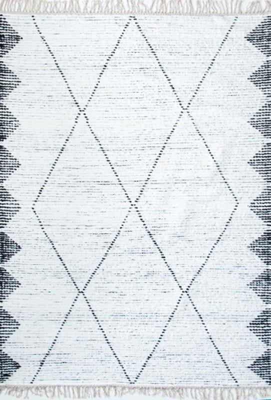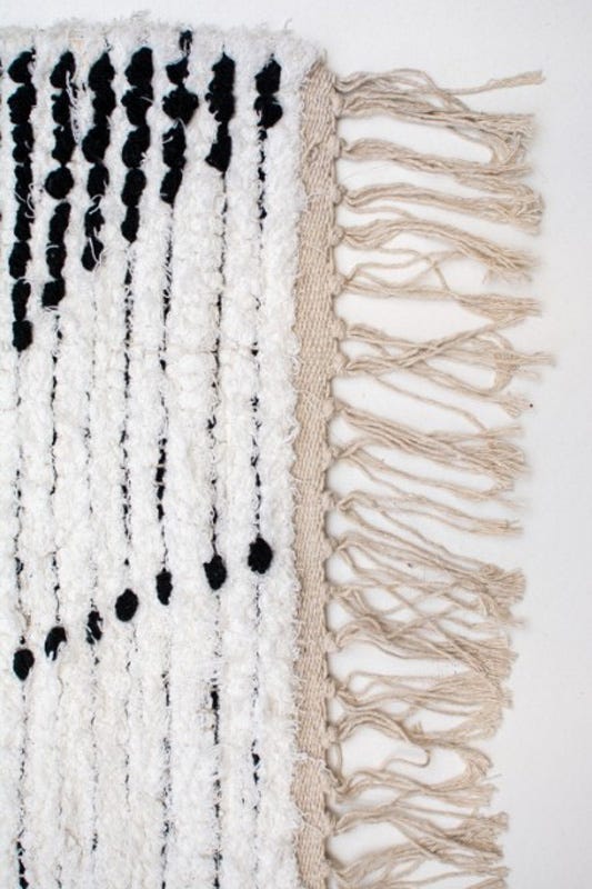 Alfombra Dhurrie Bazhars artesanal, confeccionada a mano por artesanos con lana natural de oveja. Con variedad de diseños marroquíes étnicos en base a tonalidades crudas.