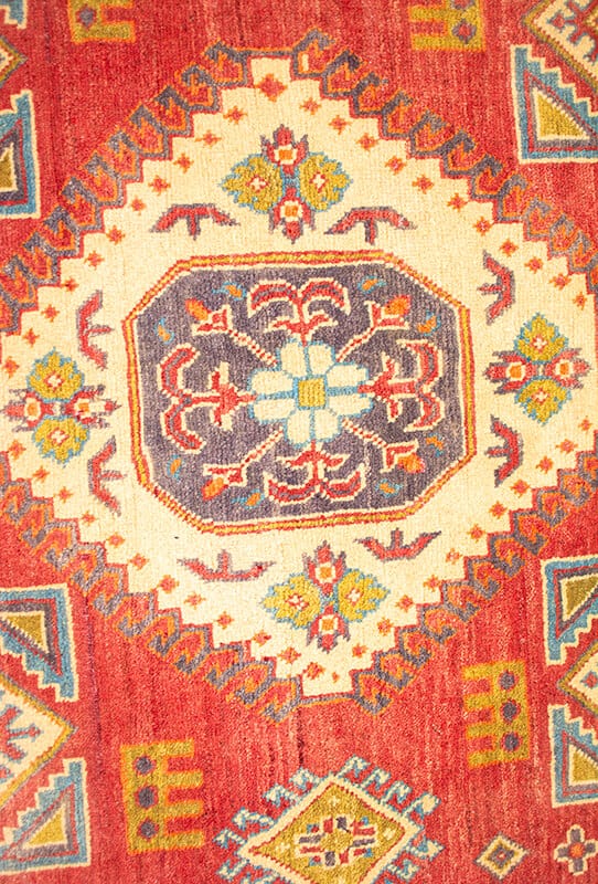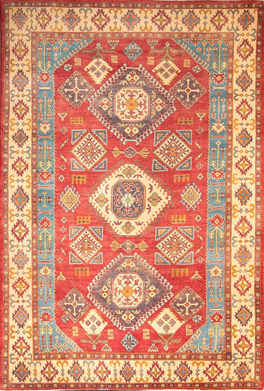 Alfombra anudada a mano por artesanos, con una mayor cantidad de nudos por cm2, diseños geométricos de estilo clásico y predominancia de tonos azules y rojos. Se originaron en el área de Kazak (Armenia) a principios del siglo XVIII.