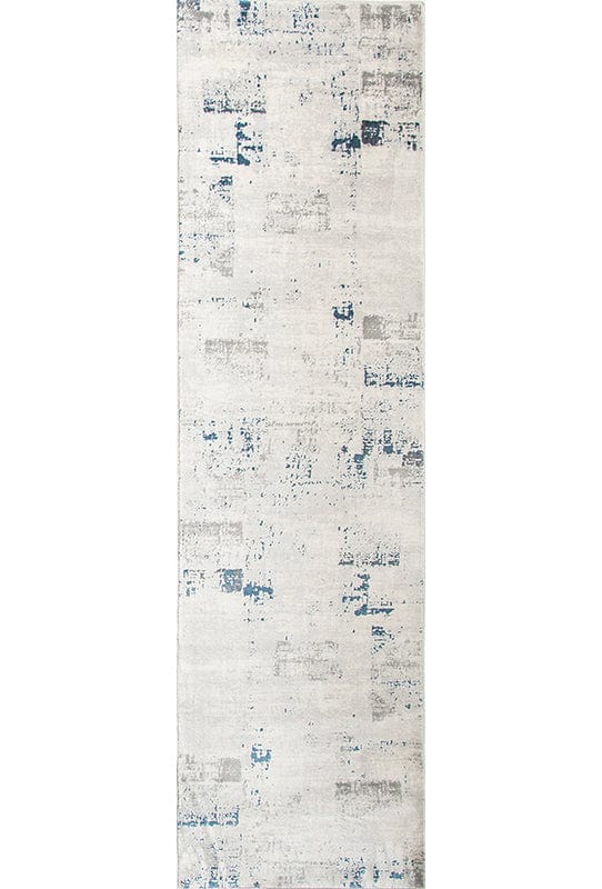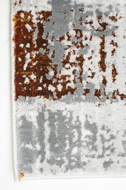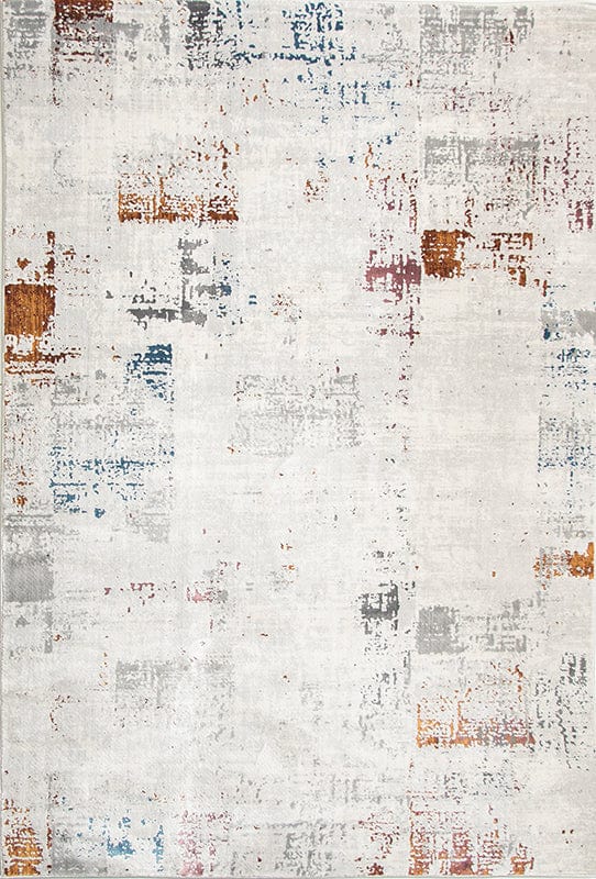 Fina alfombra Bazhars industrial, confeccionada en polyester con 960 mil puntadas por m2. Su diseño abstracto sobre fondo gris con sutiles toques de azules y terracota, logran una elegante alfombra con ricas texturas y gran calidez.