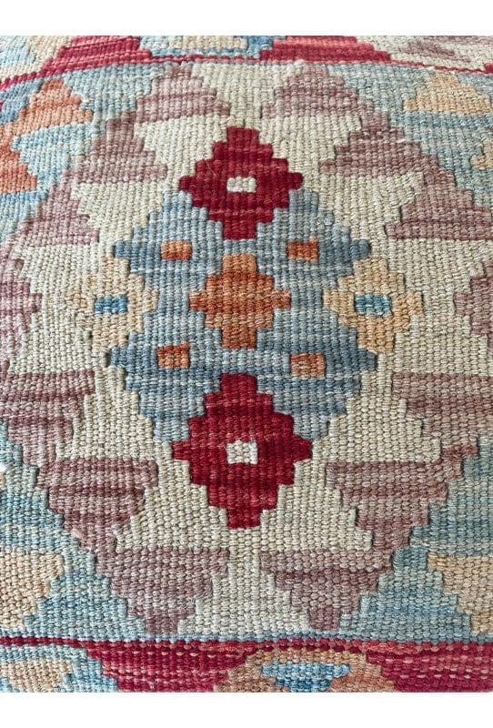 Funda de kelimes Vegi Bazhars tejida a mano en telares por artesanos afganos, con diseños étnicos y vivos colores usando lanas hiladas artesanalmente y teñidas con tintas naturales, manteniendo una tradición transmitida de generación en generación. Cada ejemplar es único e irrepetible.