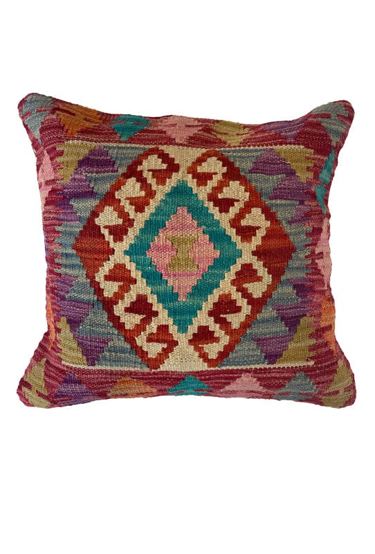 Funda de kelimes Vegi Bazhars tejida a mano en telares por artesanos afganos, con diseños étnicos y vivos colores usando lanas hiladas artesanalmente y teñidas con tintas naturales, manteniendo una tradición transmitida de generación en generación. Cada ejemplar es único e irrepetible.