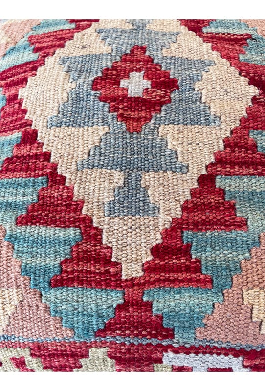 Funda de kelimes Vegi Bazhars tejida a mano en telares por artesanos afganos, con diseños étnicos y vivos colores usando lanas hiladas artesanalmente y teñidas con tintas naturales, manteniendo una tradición transmitida de generación en generación. Cada ejemplar es único e irrepetible.