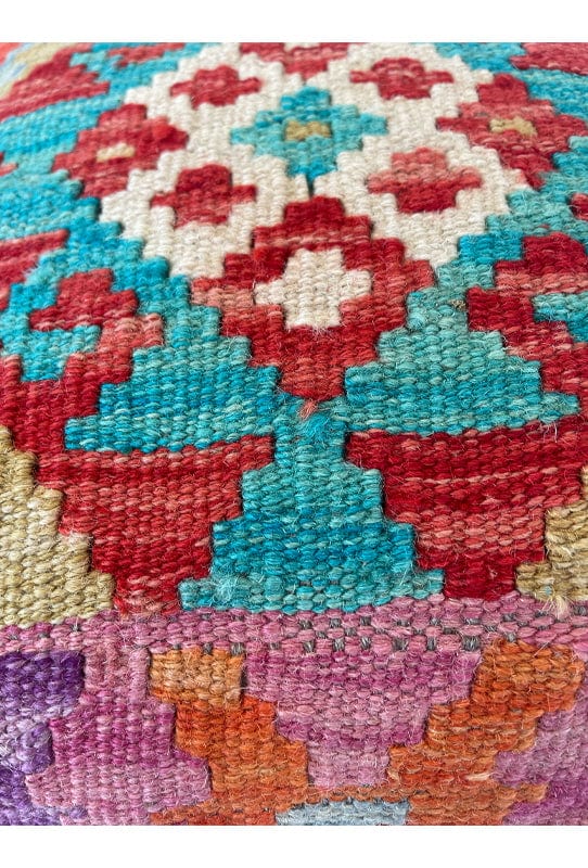 Funda de kelimes Vegi Bazhars tejida a mano en telares por artesanos afganos, con diseños étnicos y vivos colores usando lanas hiladas artesanalmente y teñidas con tintas naturales, manteniendo una tradición transmitida de generación en generación. Cada ejemplar es único e irrepetible.