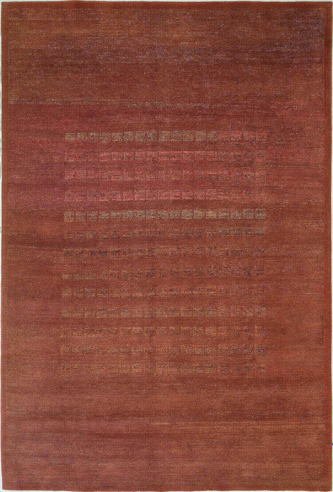 Alfombra anudada a mano por artesanos nepaleses, con diseños de estilo moderno y estilizado, con predominancia de tonos tierra, beige, café, terracota y grises.