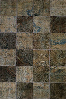 Alfombra hecha en base a una combinación de trozos de distintas alfombras anudadas a mano, modernizadas con tratamientos de teñido y carving, combinadas y cosidas por artesanos.