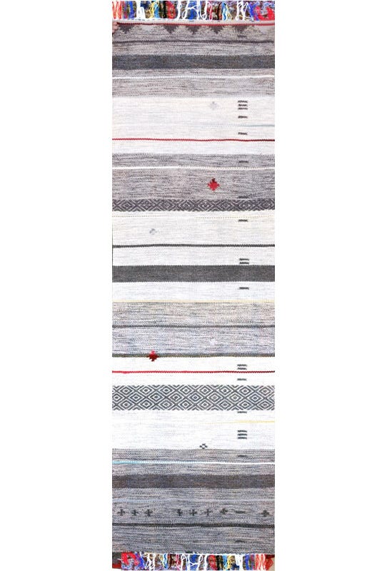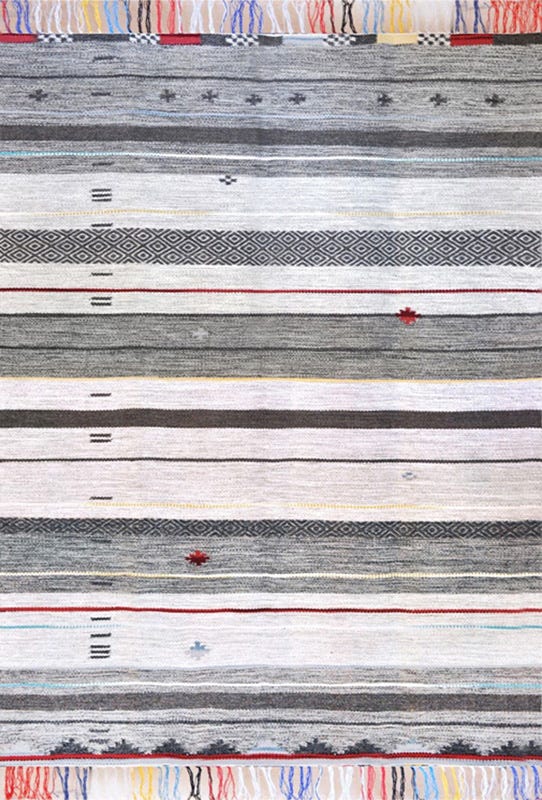 Alfombra Kelim Waz Étnico 3 de Lana Gris Multicolor