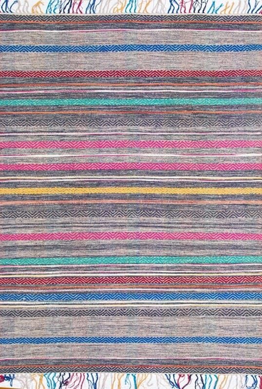 Alfombra Kelim Waz Étnico 4 de Lana Gris Multicolor