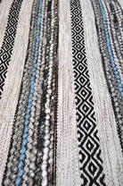 Alfombra Bazhars artesanal, confeccionada a mano por artesanos con lana natural de oveja. Su diseño combina además de variedad de colores, diferentes tramados de tejido, logrando una alfombra contundente con ricas texturas y gran calidez.