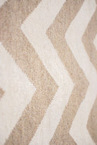 Alfombra kelim tejida a mano en India, con técnica de tejido plano. Destaca por su sencillo diseño en colores natural y beige, ideal para añadir un toque artesanal y elegante a cualquier espacio.