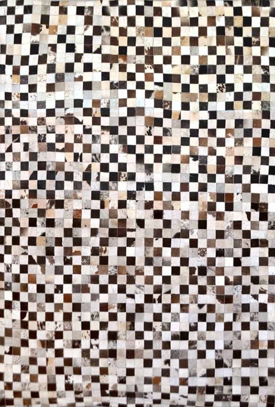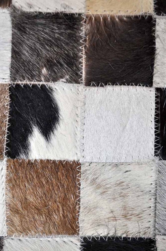 Alfombra Patchwork Bazhars artesanal, cosida a mano por artesanos, combinando trozos de cuero natural logrando un fino y armónico diseño.