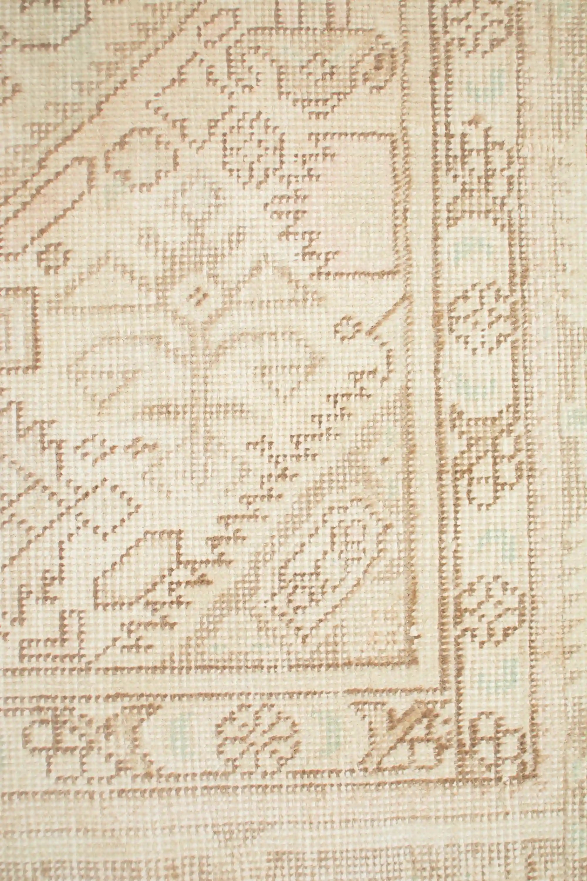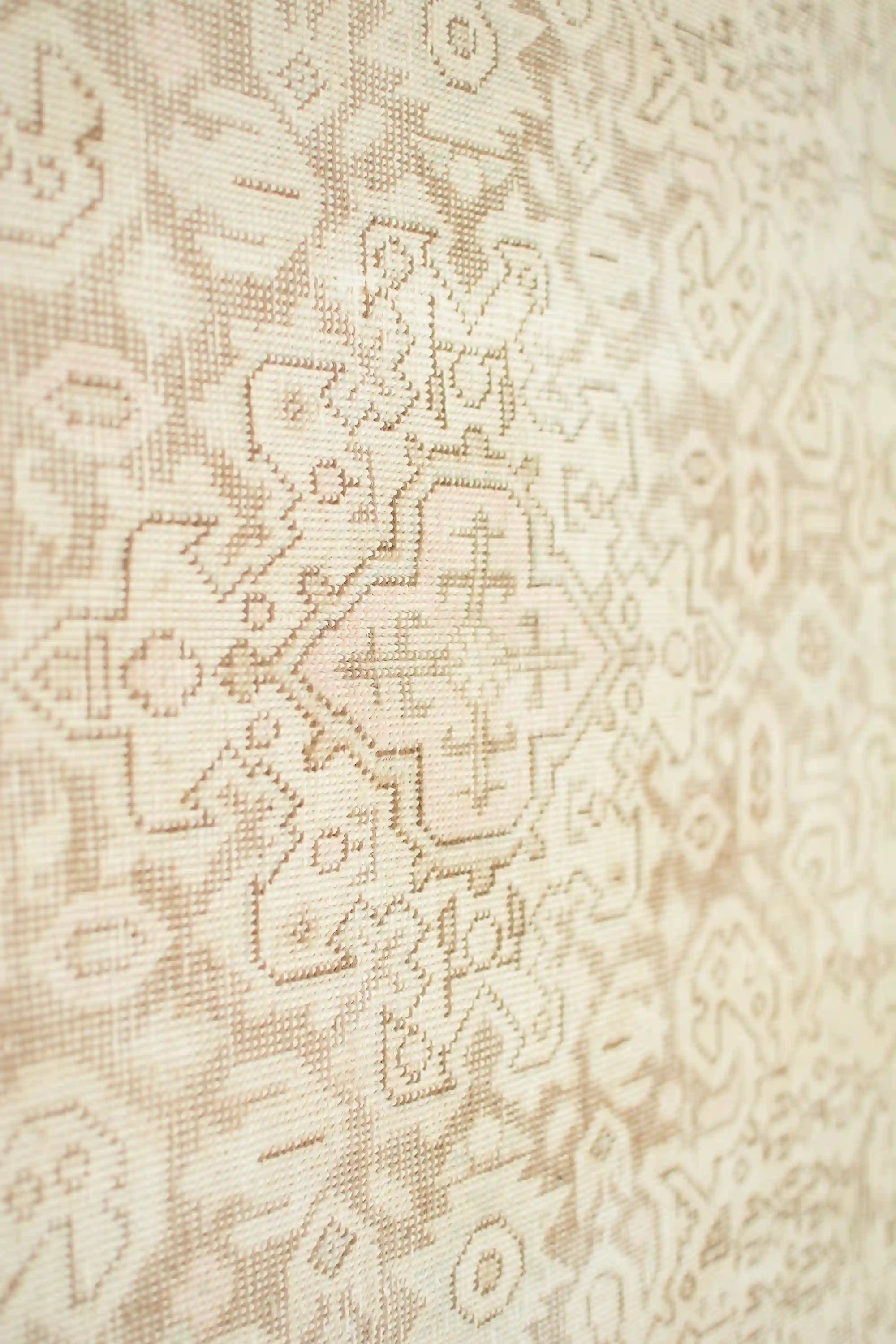 Alfombra anudada a mano por artesanos, reciclada y modernizada a través de tratamientos de teñido y carving, logrando un diseño clásico con colores y texturas modernas.