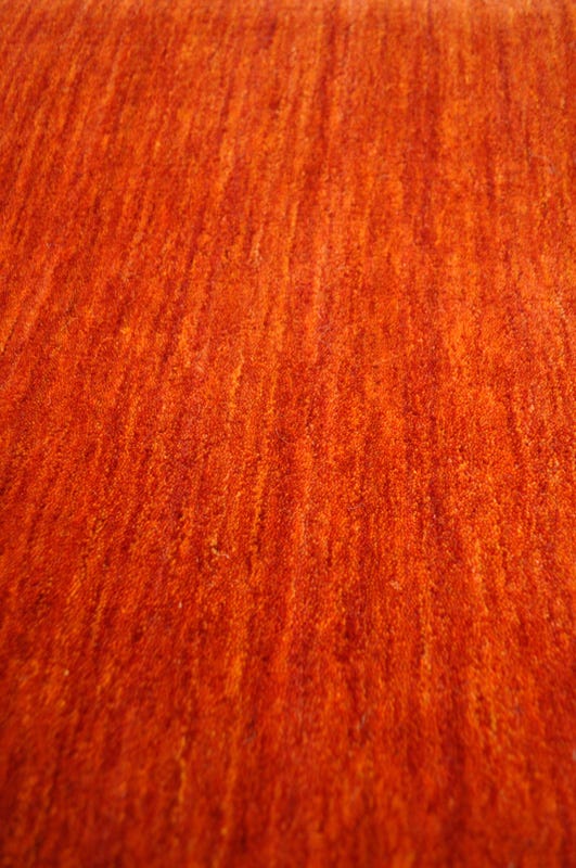 Alfombra Bazhars artesanal, confeccionada a mano por artesanos con lana neozelandesa natural de oveja, una de las mejores del mundo. Su diseño unitonal naranja, logra una alfombra contundente con ricas texturas y gran calidez.