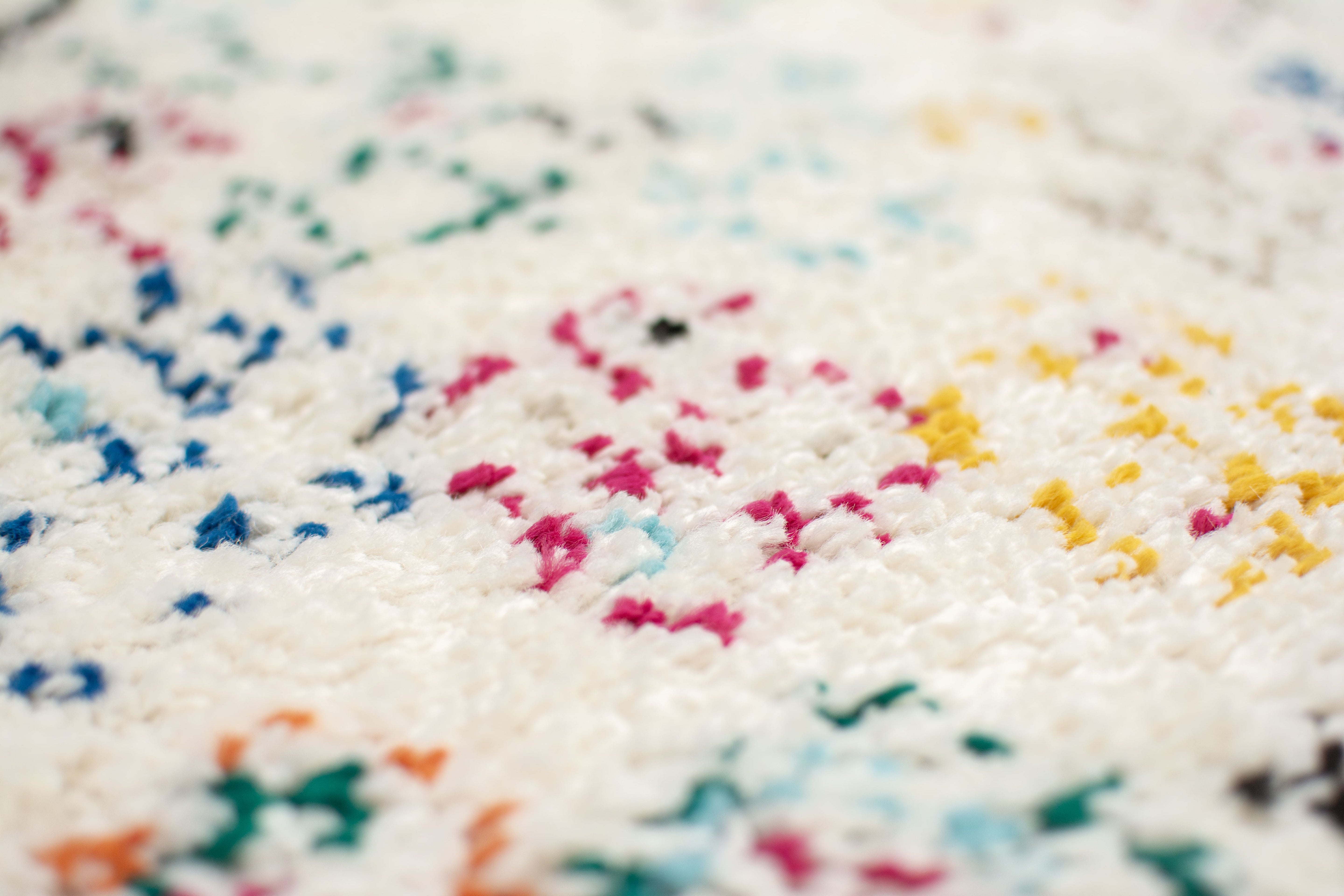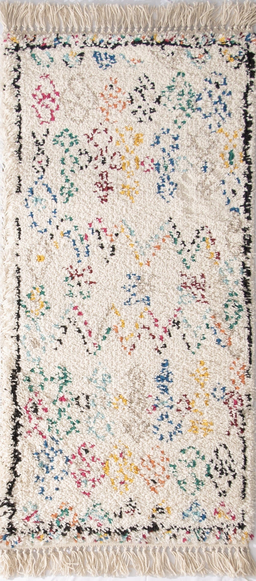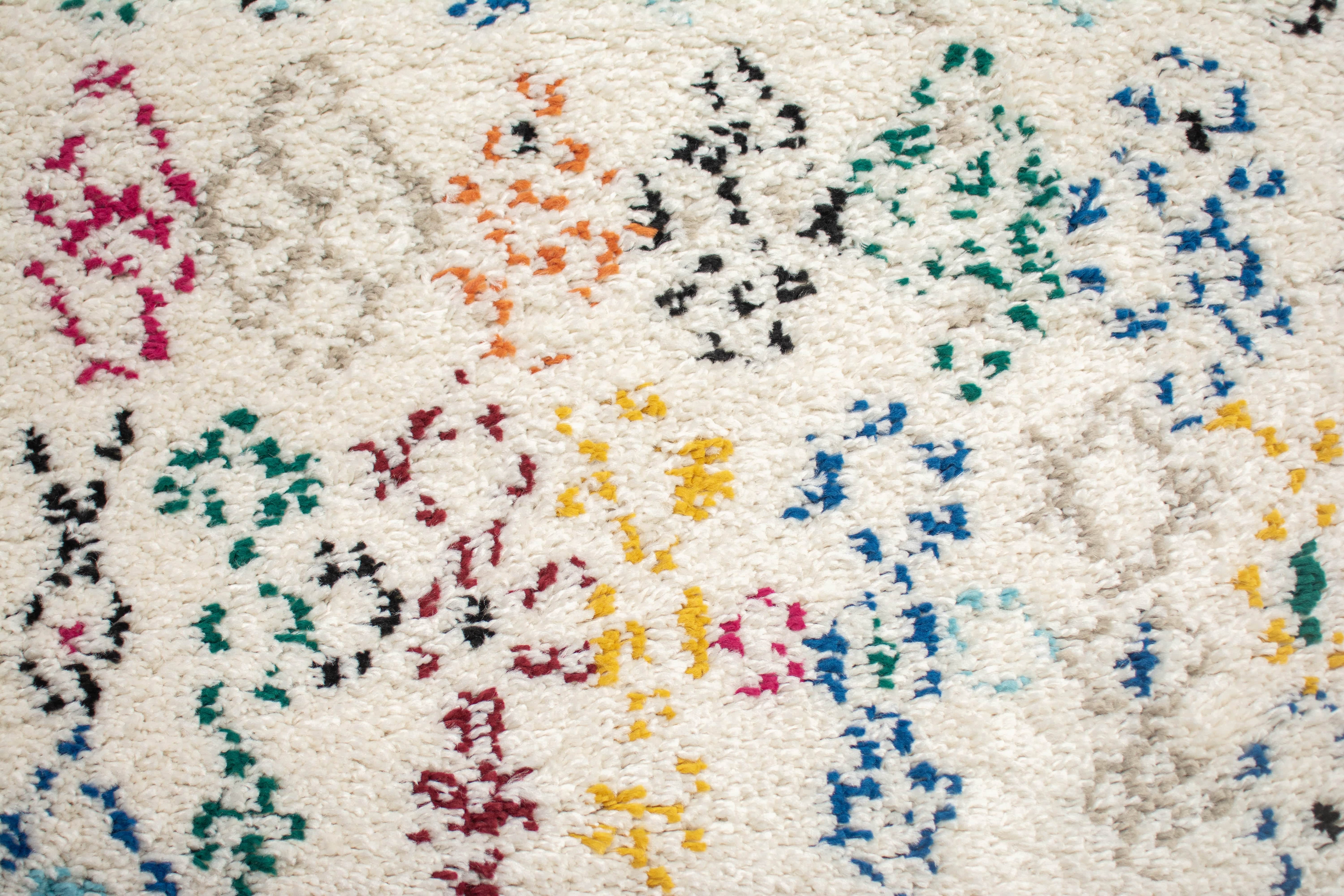 Confeccionada en polipropileno frisé, su fondo claro se realza con patrones de inspiración bereber marroquí en tonos vibrantes, que llenan de color y personalidad cualquier espacio. De textura gruesa y suave al tacto, es ideal para caminar descalzo y disfrutar de su calidez en cada paso. Perfecta para dar un acento acogedor en ambientes neutros o minimalistas.