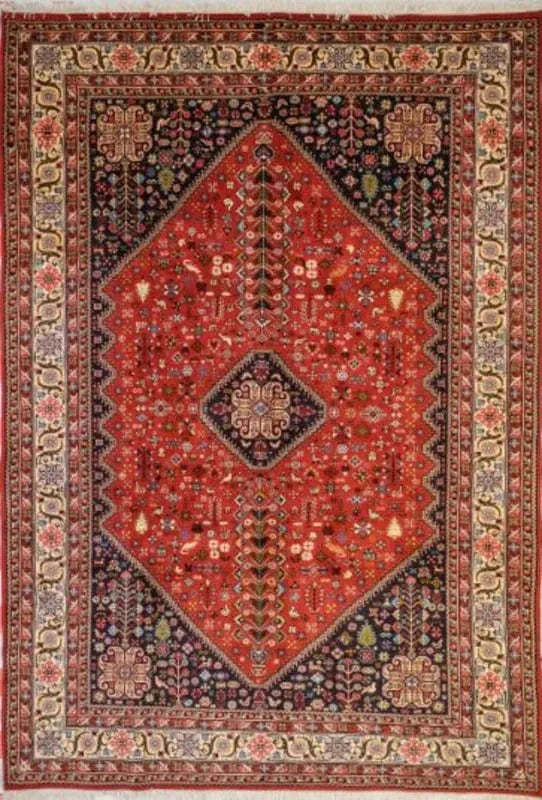 Alfombra anudada a mano por artesanos iraníes. El motivo de diseño más frecuente de este estilo es el "ZIL-IL-SULTAN", que es la representación de un jarrón adornado con flores en un medallón central.