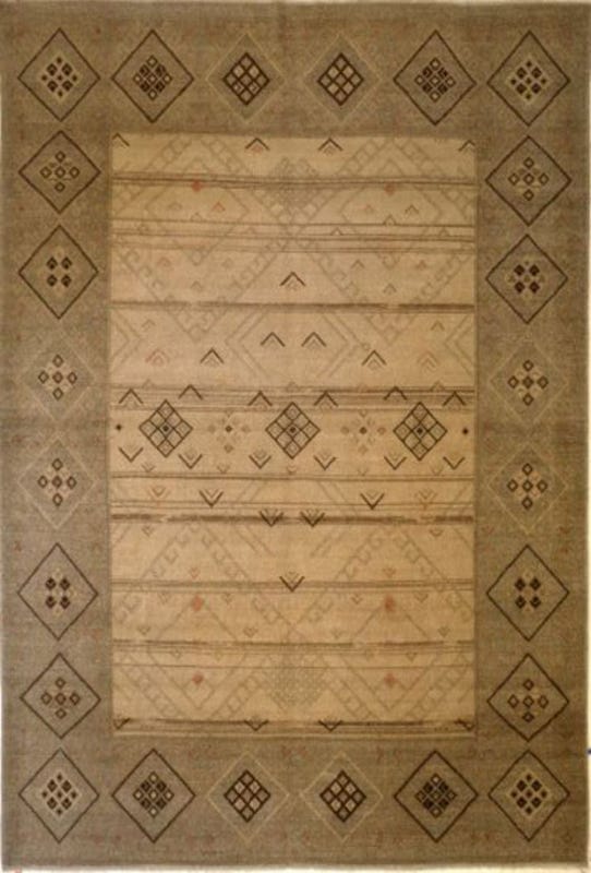 Alfombra de no menos de 80 años de antiguedad, anudada a mano por artesanos en tiempos en que la elaboración no estaba industrializada y por ende todo el proceso de hilado, teñido y anudado se hacía en forma 100% artersanal.