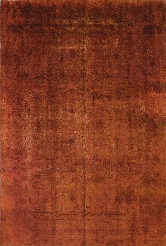 Alfombra de no menos de 80 años de antiguedad, anudada a mano por artesanos en tiempos en que la elaboración no estaba industrializada y por ende todo el proceso de hilado, teñido y anudado se hacía en forma 100% artersanal.