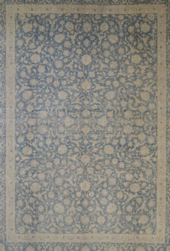 Alfombra de no menos de 80 años de antiguedad, anudada a mano por artesanos en tiempos en que la elaboración no estaba industrializada y por ende todo el proceso de hilado, teñido y anudado se hacía en forma 100% artersanal.