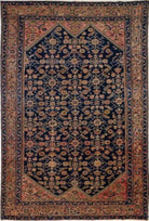 Alfombra de no menos de 80 años de antiguedad, anudada a mano por artesanos en tiempos en que la elaboración no estaba industrializada y por ende todo el proceso de hilado, teñido y anudado se hacía en forma 100% artersanal.