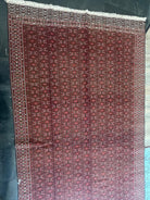 Alfombra de no menos de 80 años de antiguedad, anudada a mano por artesanos en tiempos en que la elaboración no estaba industrializada y por ende todo el proceso de hilado, teñido y anudado se hacía en forma 100% artesanal.