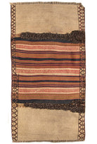 Las alforjas persas nómadas son piezas únicas de artesanía tradicional, tejidas a mano por comunidades nómadas de Irán con lana de alta calidad y tintes naturales. Originalmente diseñadas para transportar provisiones durante los viajes, su diseño incluye dos compartimentos amplios unidos por una tira central, adornados con patrones geométricos cargados de simbolismo cultural. Hoy en día, estas alforjas se han convertido en piezas decorativas versátiles, ideales como elementos decorativos o alfombras, que aportan un toque bohemio y auténtico a cualquier espacio, combinando funcionalidad con la rica historia del arte textil persa.