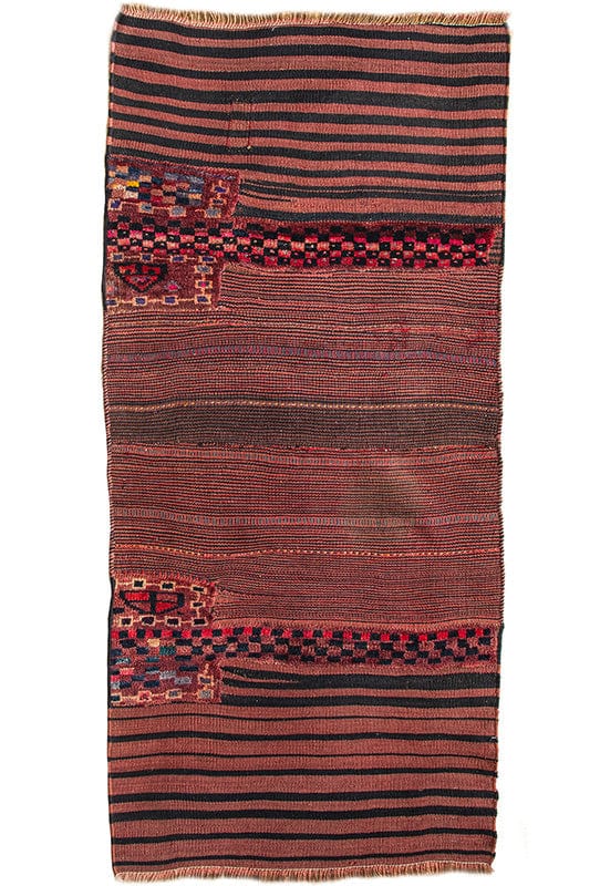 Las alforjas persas nómadas son piezas únicas de artesanía tradicional, tejidas a mano por comunidades nómadas de Irán con lana de alta calidad y tintes naturales. Originalmente diseñadas para transportar provisiones durante los viajes, su diseño incluye dos compartimentos amplios unidos por una tira central, adornados con patrones geométricos cargados de simbolismo cultural. Hoy en día, estas alforjas se han convertido en piezas decorativas versátiles, ideales como elementos decorativos o alfombras, que aportan un toque bohemio y auténtico a cualquier espacio, combinando funcionalidad con la rica historia del arte textil persa.