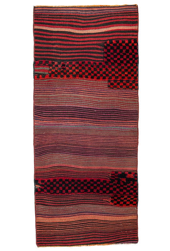 Las alforjas persas nómadas son piezas únicas de artesanía tradicional, tejidas a mano por comunidades nómadas de Irán con lana de alta calidad y tintes naturales. Originalmente diseñadas para transportar provisiones durante los viajes, su diseño incluye dos compartimentos amplios unidos por una tira central, adornados con patrones geométricos cargados de simbolismo cultural. Hoy en día, estas alforjas se han convertido en piezas decorativas versátiles, ideales como elementos decorativos o alfombras, que aportan un toque bohemio y auténtico a cualquier espacio, combinando funcionalidad con la rica historia del arte textil persa.
