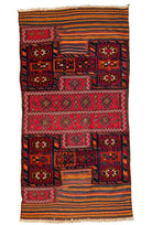 Las alforjas persas nómadas son piezas únicas de artesanía tradicional, tejidas a mano por comunidades nómadas de Irán con lana de alta calidad y tintes naturales. Originalmente diseñadas para transportar provisiones durante los viajes, su diseño incluye dos compartimentos amplios unidos por una tira central, adornados con patrones geométricos cargados de simbolismo cultural. Hoy en día, estas alforjas se han convertido en piezas decorativas versátiles, ideales como elementos decorativos o alfombras, que aportan un toque bohemio y auténtico a cualquier espacio, combinando funcionalidad con la rica historia del arte textil persa.