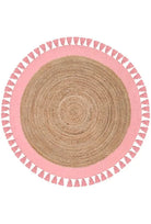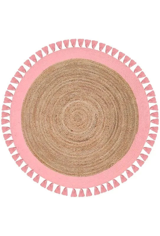Alfombra de Yute Redonda Malibú Natural Rosa Flecos