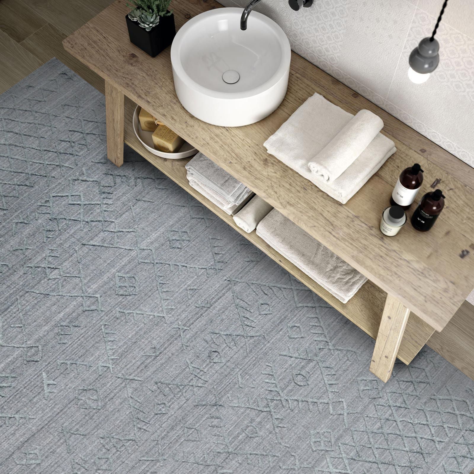 Alfombra Bazhars artesanal, confeccionada a mano por artesanos con lana natural de oveja. Posee diseños geométricos étnicos dentro de un mismo rango de tonalidad, logrando una alfombra con ricas texturas y gran calidez.