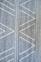 Alfombra Dhurrie Bazhars artesanal, confeccionada a mano por artesanos con lana natural de oveja. Con variedad de diseños geométrico étnicos en base a tonalidades grises y beige.