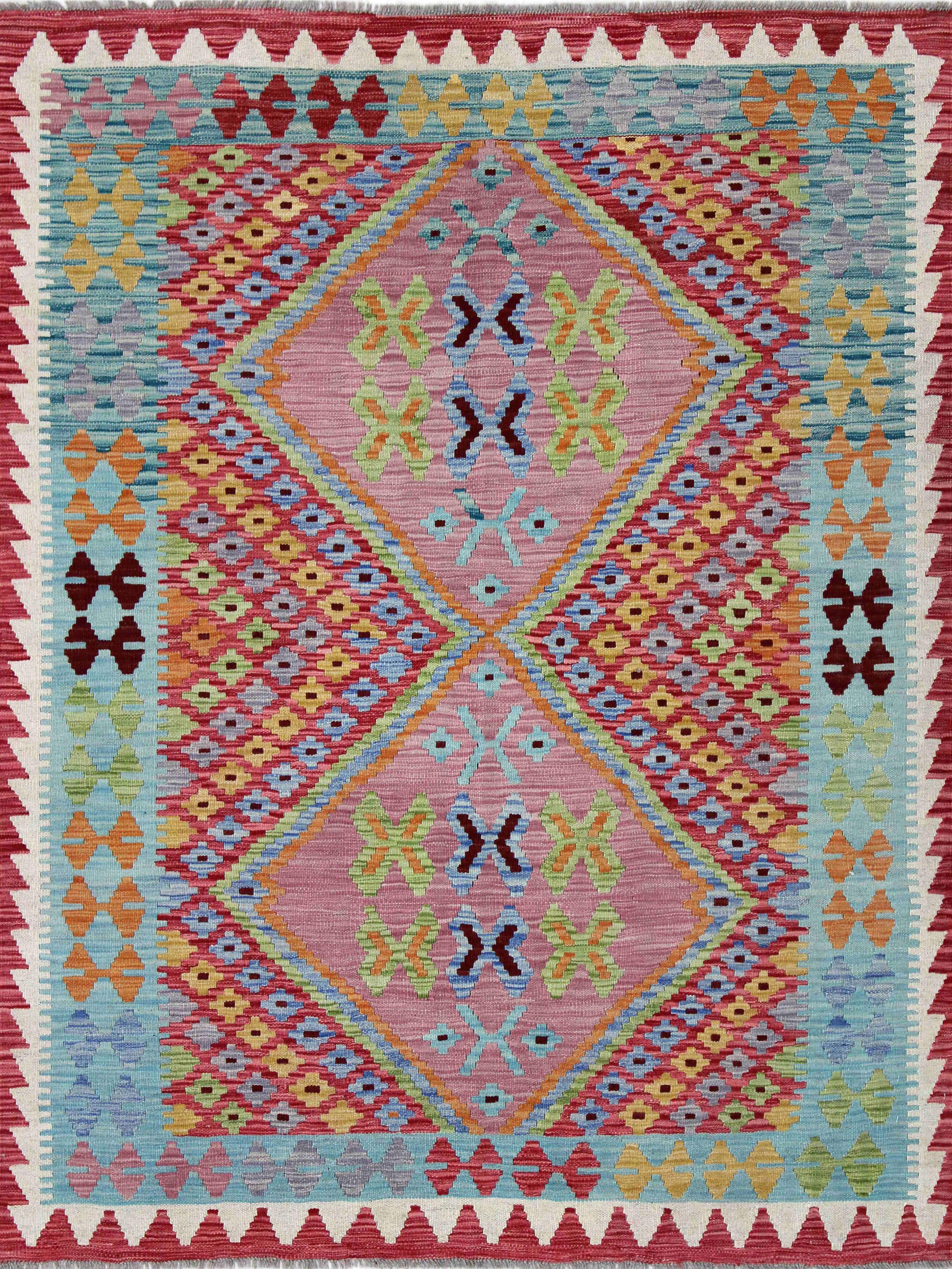 Alfombra tejida a mano en telares por artesanos afganos, con diseños étnicos y vivos colores usando lanas hiladas artesanalmente y teñidas con tintas naturales, manteniendo una tradición transmitida de generación en generación.