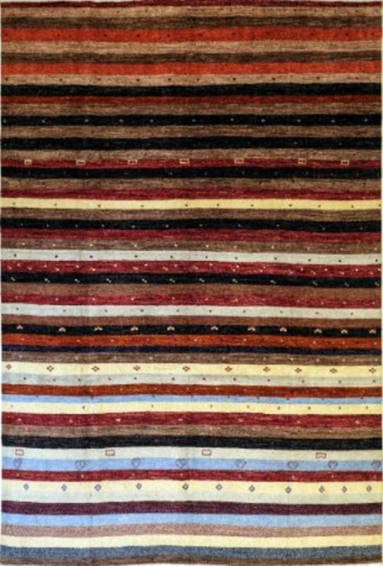 Alfombra anudada a mano por artesanos, con motivos sobrios, estilizados y lineales. Sor tejidas por pueblos nómades y su tradición se remonta desde el siglo XVI.